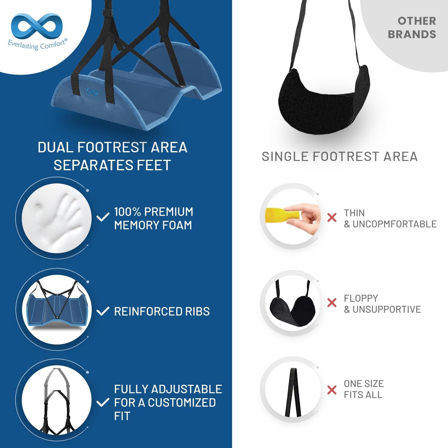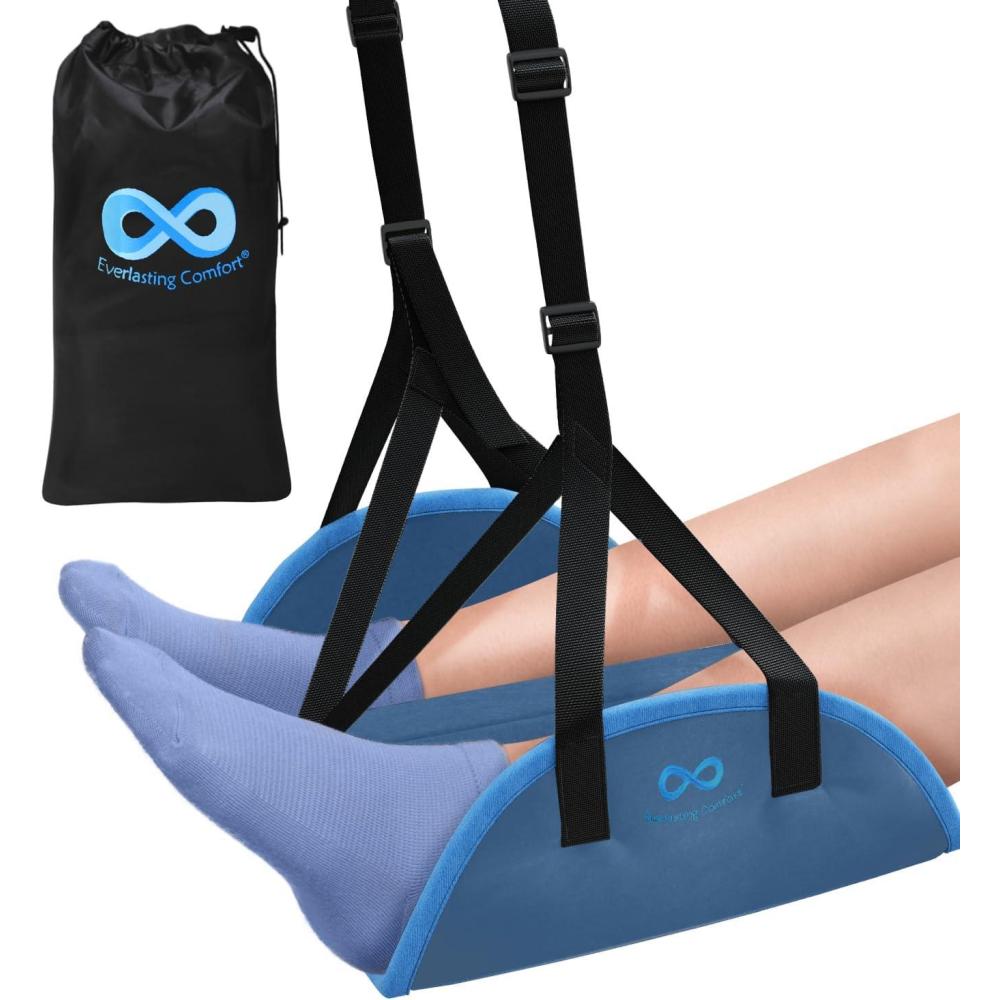 Everlasting Comfort Airplane Foot Hammock - Memory Foam Foot Rest for Plane Travel - Portable Foot Rest for Air Travel, Desk & Car - Airplane Essentials Foot Hammock for Plane Travel