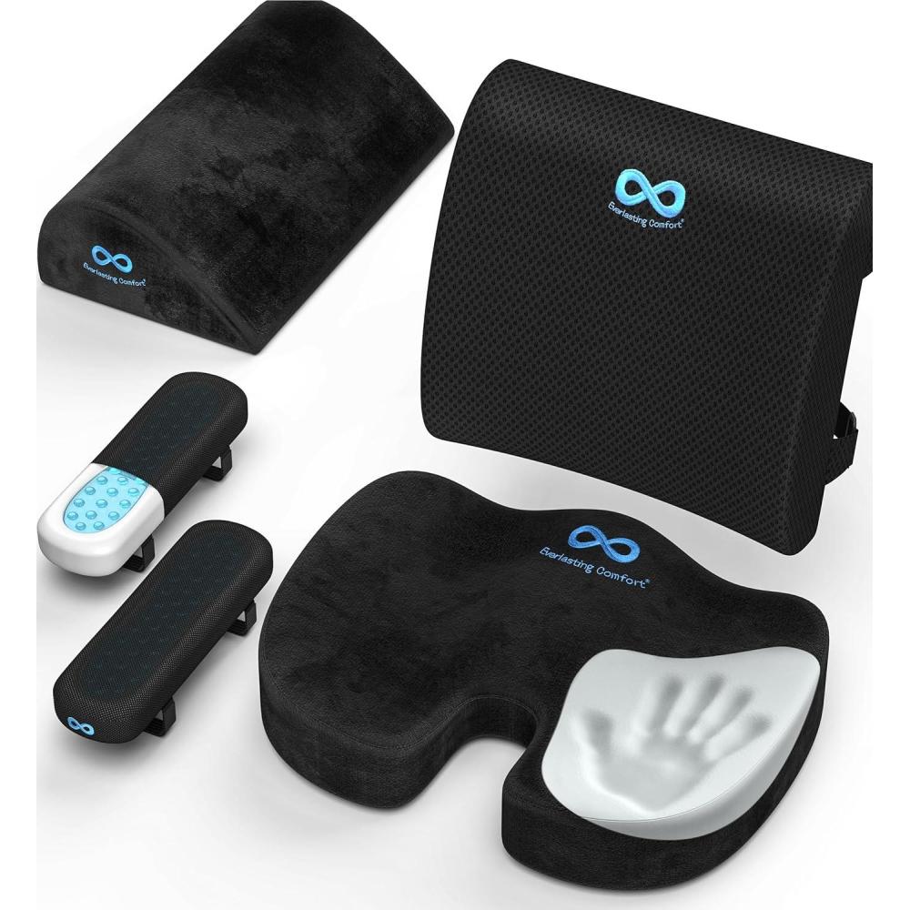 COMPLETE OFFICE SETUP: Upgrade your office space with our premium bundle featuring our ergonomically designed back cushion, seat cushion, foot rest, and arm rest pads, perfect for providing superior support throughout your day