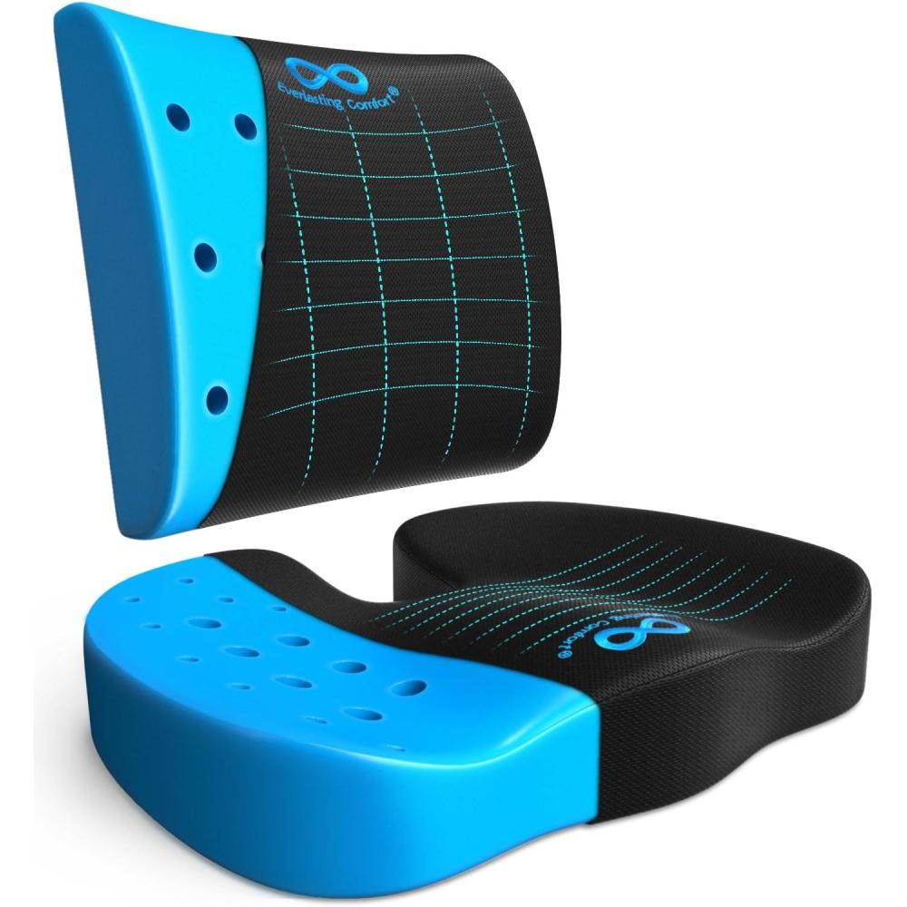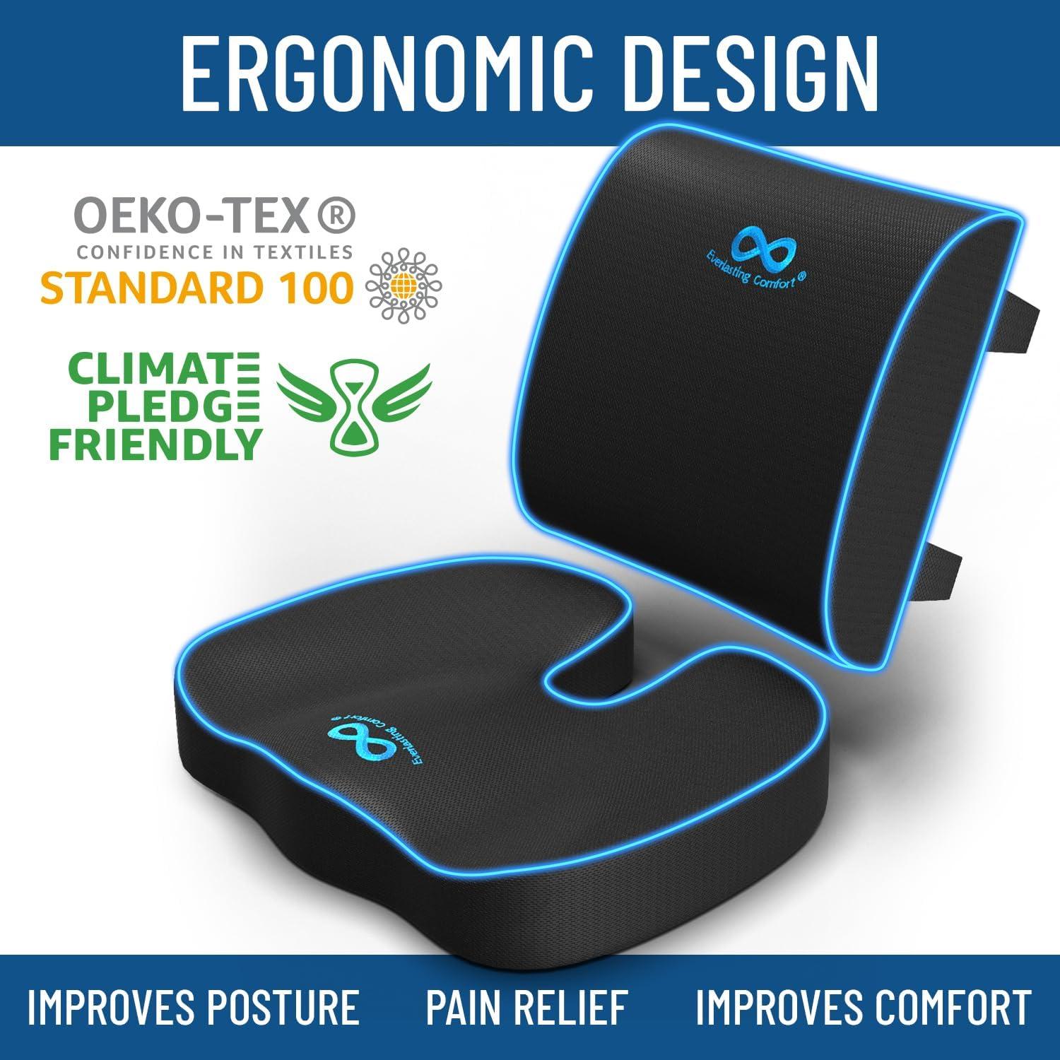 Everlasting Comfort Doctor Recommended Memory Foam Seat Cushion for Office Chairs & Car Seat – Ergonomic Office Desk Accessories for Tailbone Pain Relief, Sciatica & Back Support(Black Cooling Additional Lumbar Support)