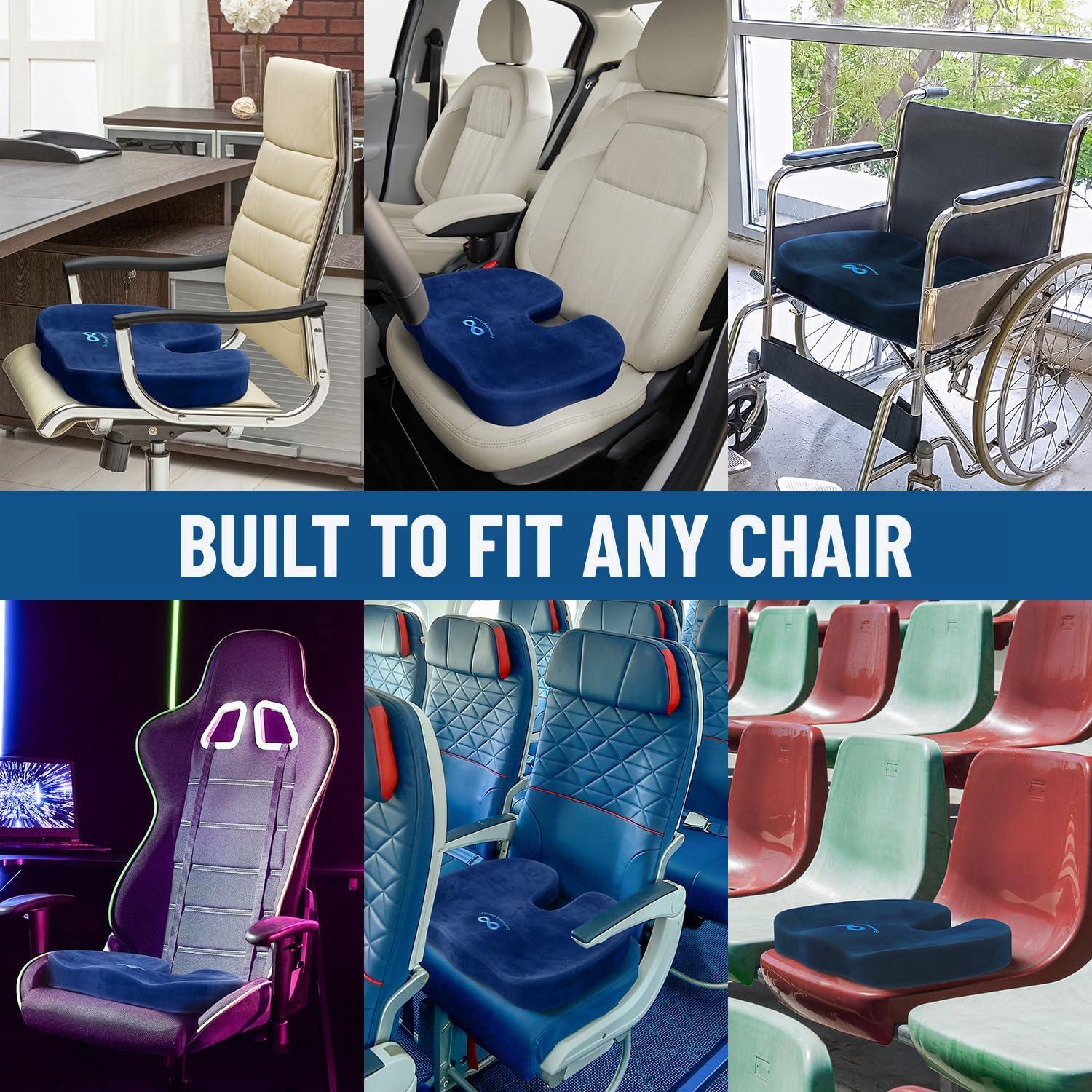 OFFICE CHAIR SEAT CUSHION: Our everlasting comfort seat cushion is ideal for extended workdays. Made with premium memory foam, it supports the butt, conforming to your body for all-day comfort in office chairs or car seats