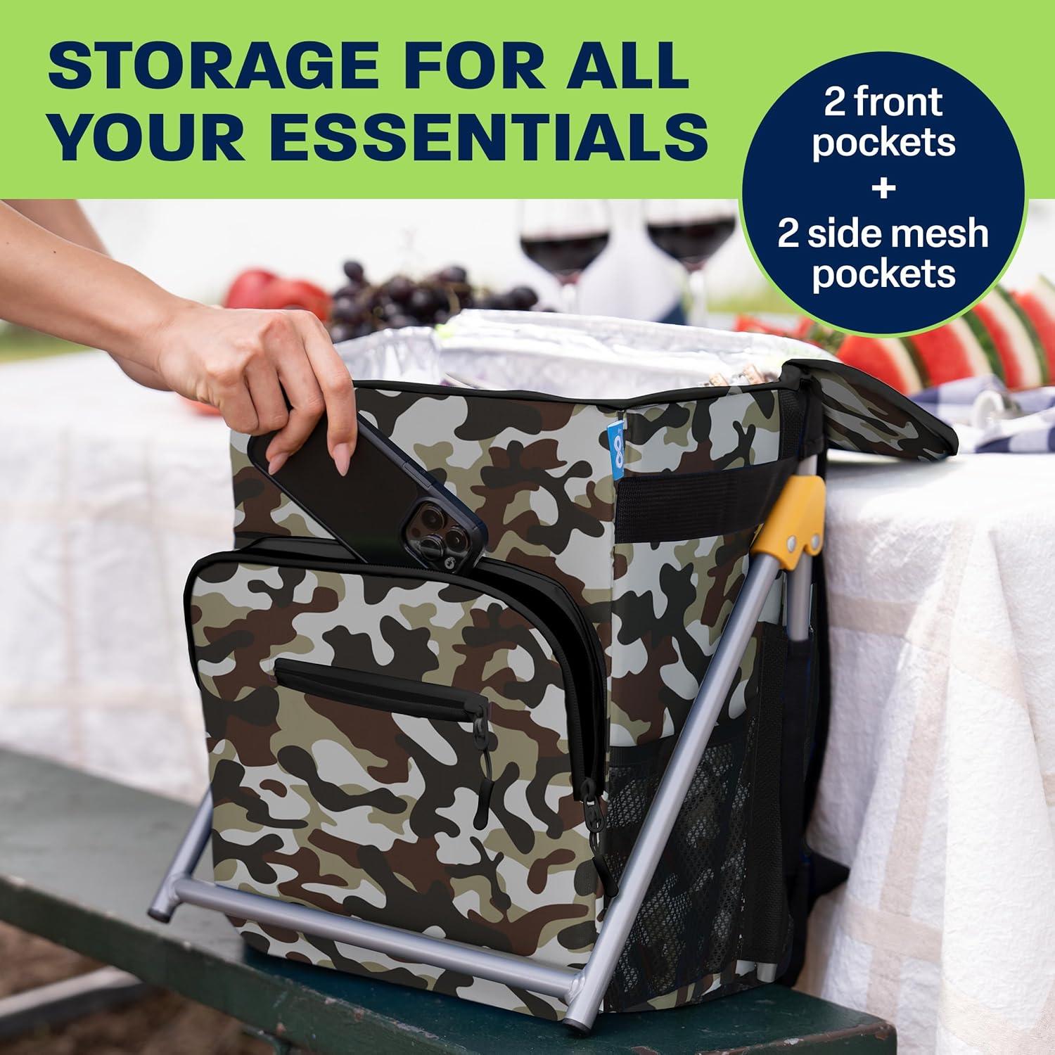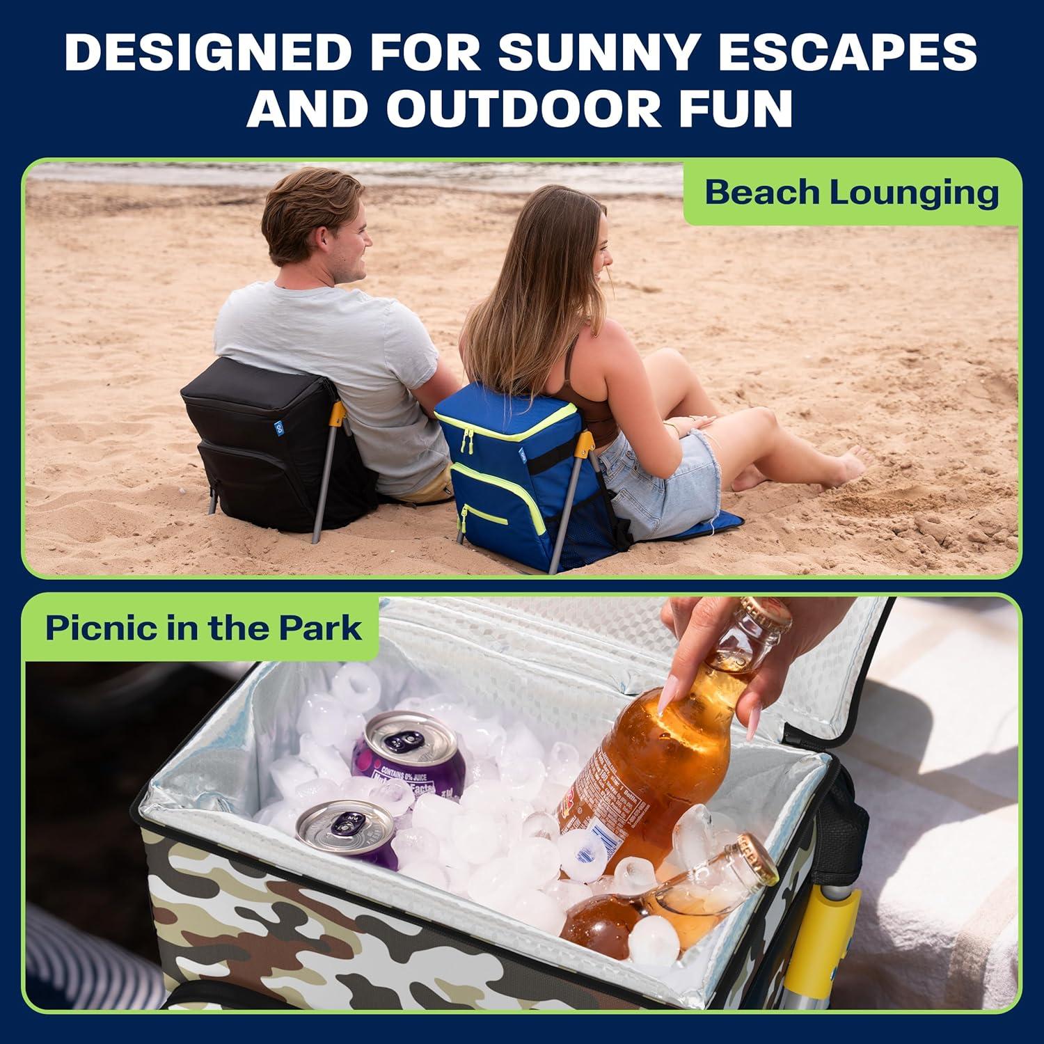 ULTIMATE COMFORT & LARGE CAPACITY – Designed for all-day relaxation, our backpack cooler chair features a foldable foam padded seat for superior comfort and a spacious insulated cooler compartment that keeps food and drinks cold for hours – ideal for the beach.