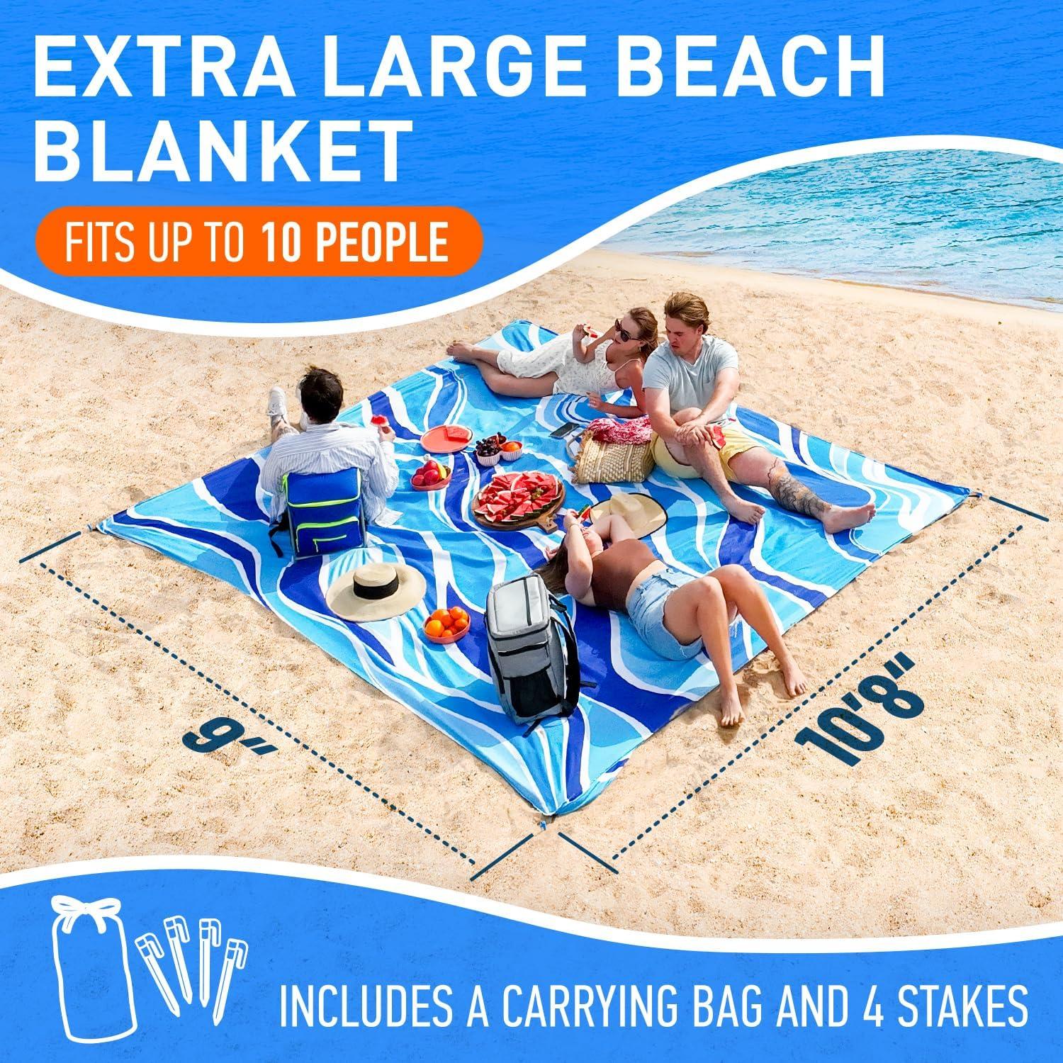 Everlasting Comfort Large Beach Blanket Waterproof & Sandproof – 80″ x 80″/6.7ft x 6.7ft – Lightweight Beach Mat, Picnic Mat, Outdoor Blanket – Ideal for Festivals, Camping – Orange(Blue)