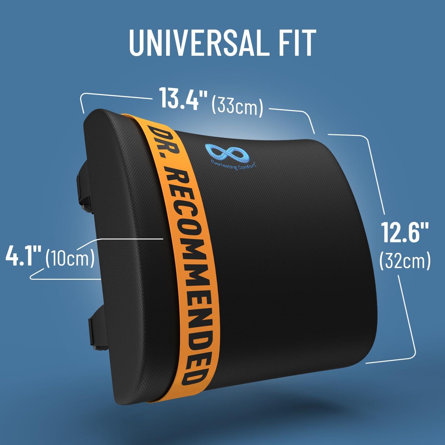 UNIVERSAL FIT OFFICE CHAIR CUSHION: Adjustable straps and extensions fit chairs up to 32″ wide; perfect for office chairs, car seats, wheel chairs, couches, and more; our lower back pillow provides exceptional car back support and couch back support