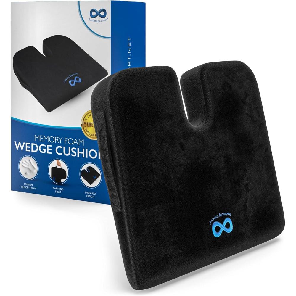 ERGONOMIC CAR SEAT WEDGE CUSHION: Featuring a U-shaped cutout, this truck seat cushion or car seat cushion supports your tailbone and reduces pressure, making long commutes and drives more comfortable; this car seat pillow is a road trip essential
