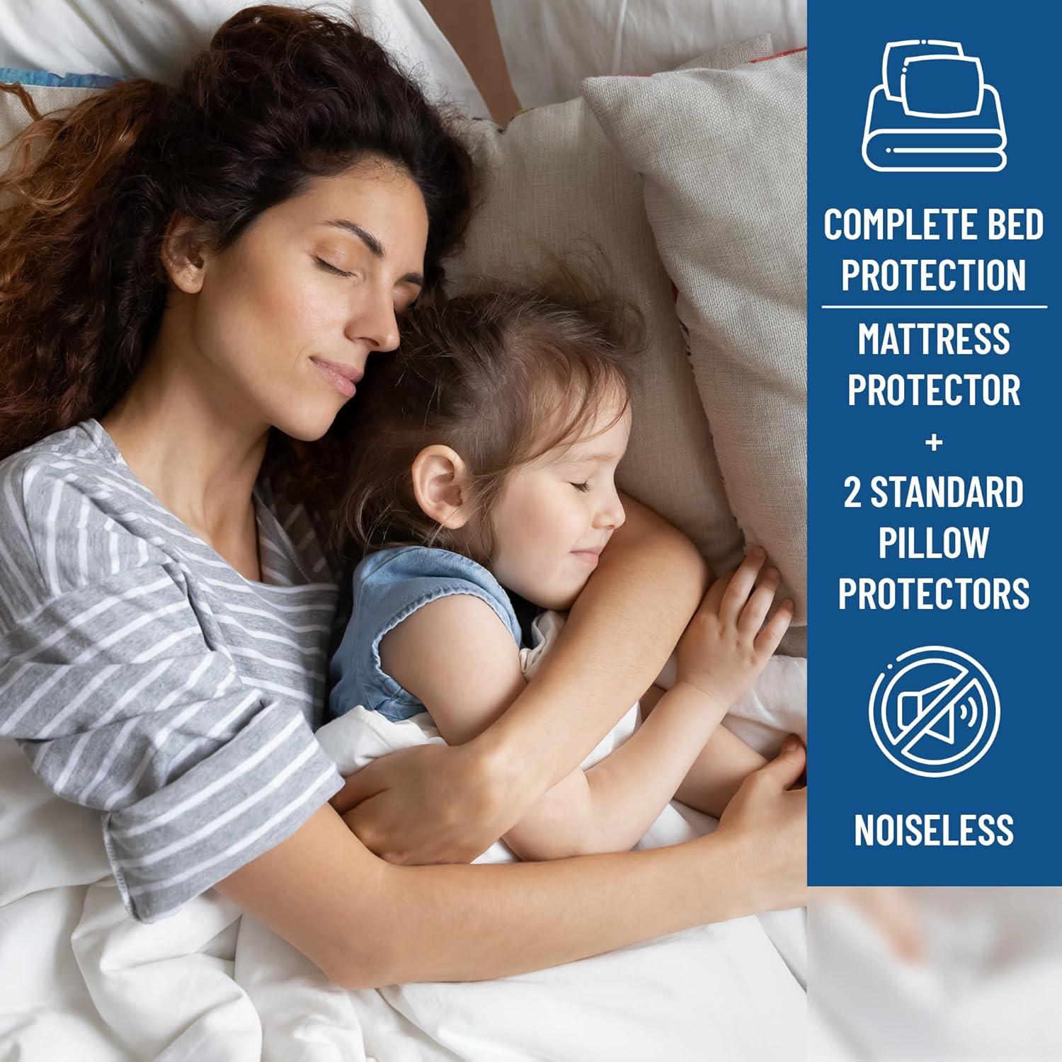 imageEverlasting Comfort Premium Full Mattress Protector Waterproof  2 Pillow Protectors Included  Hypoallergenic Deep Pocket Design Up to 18quot  Noiseless Waterproof Mattress ProtectorCalifornia King