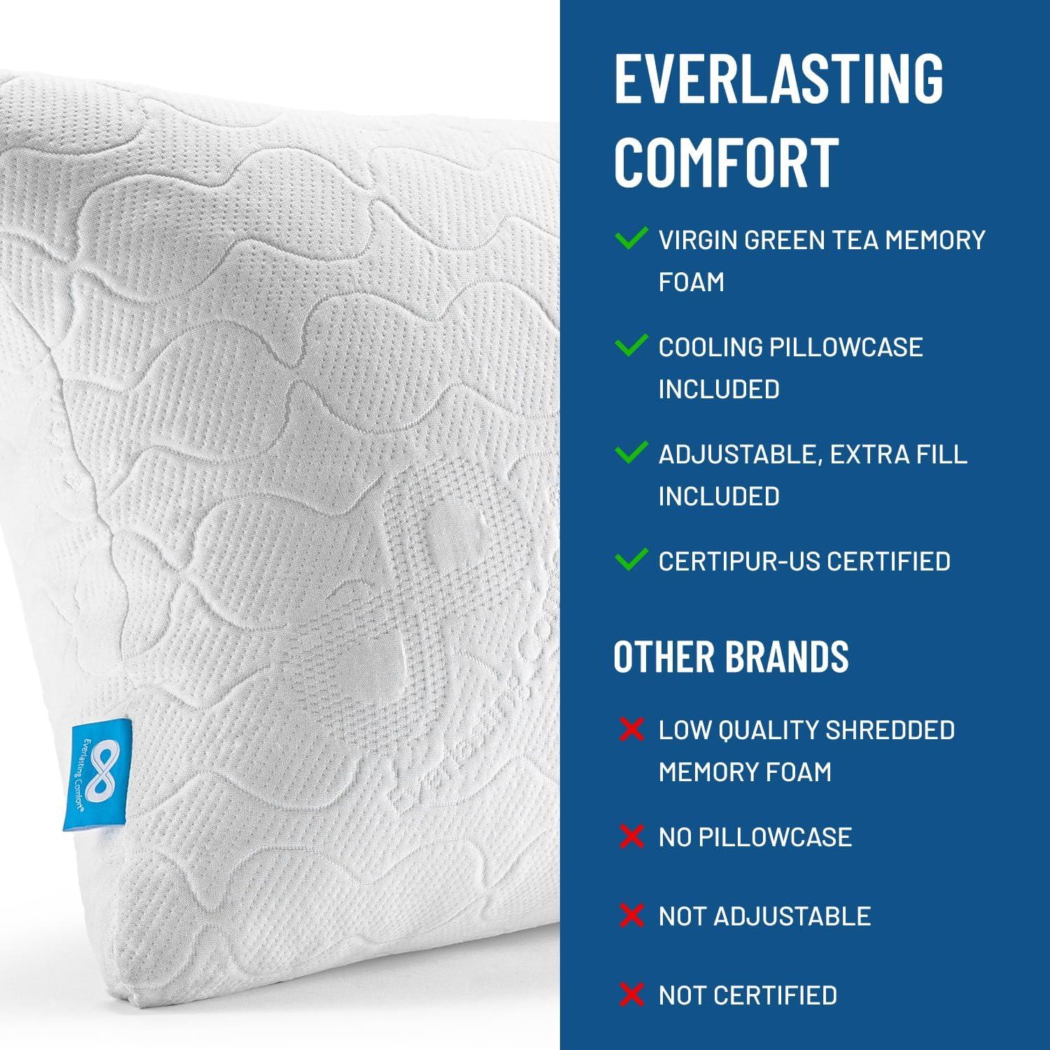 Everlasting Comfort Shredded Memory Foam Pillows with Adjustable Loft - 2X Better Cooling - Japanese Cooling Fiber Pillow Case - Hypoallergenic Pillows for Side Sleepers (Queen)(King (Pack of 1))