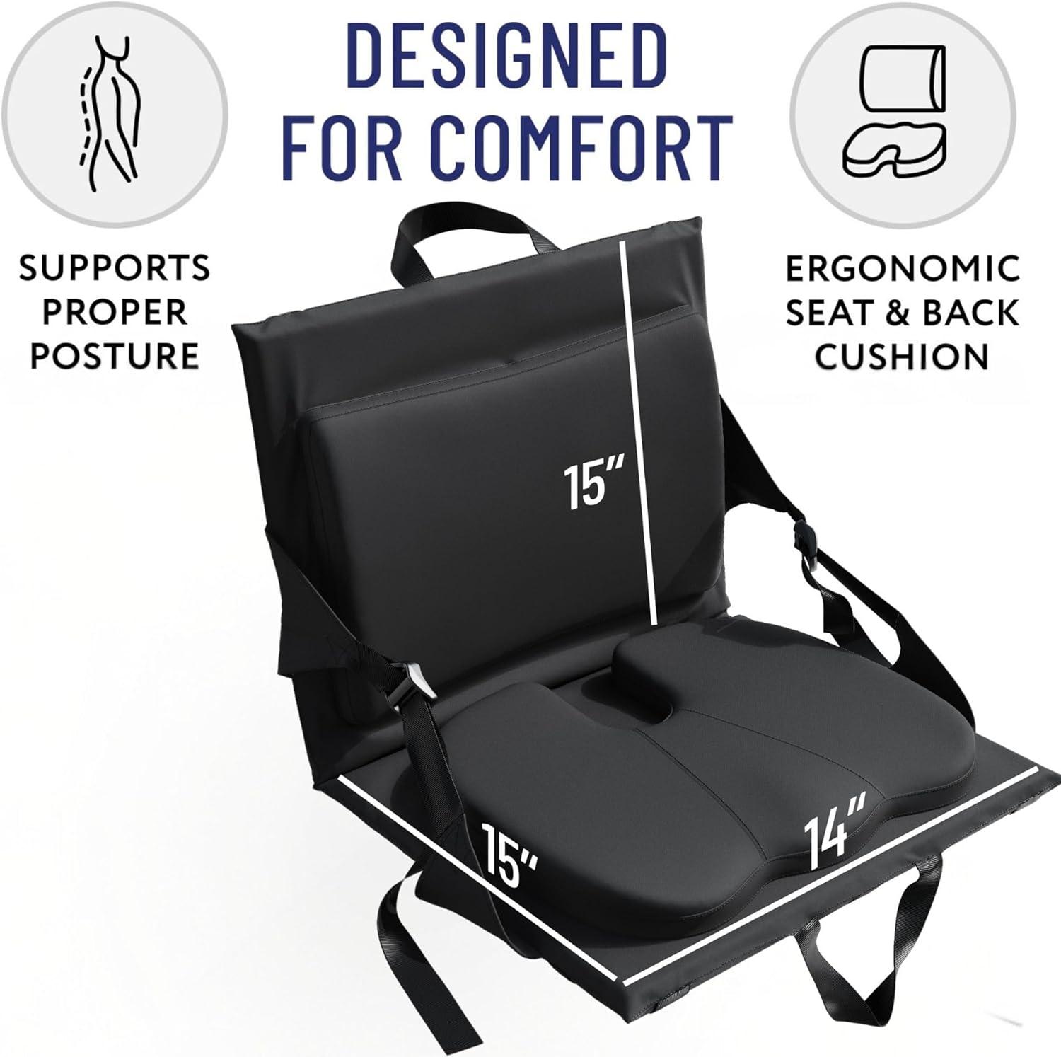 Everlasting Comfort Stadium Seats with Back Support – Adjustable Memory Foam Bleacher Chairs with Back and Cushion, Portable, Easy Folding Stadium Seat Cushion with Storage Pocket(Black)