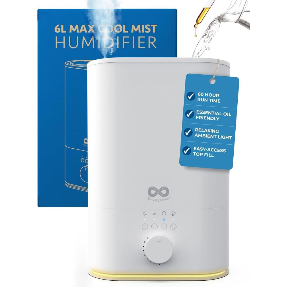 CONVENIENT TOP FILL DESIGN: Easily refill this humidifier for large room directly from the top without disassembly; prevents spills and messes; large 6L tank requires less frequent refilling; ideal home humidifier for daily convenience
